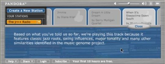 . You basically provide them with one or more artists’ names and/or song titles and then they produce a playlist that’s based on a rhytmical, style etc. analysis performed by the Music Genome Project